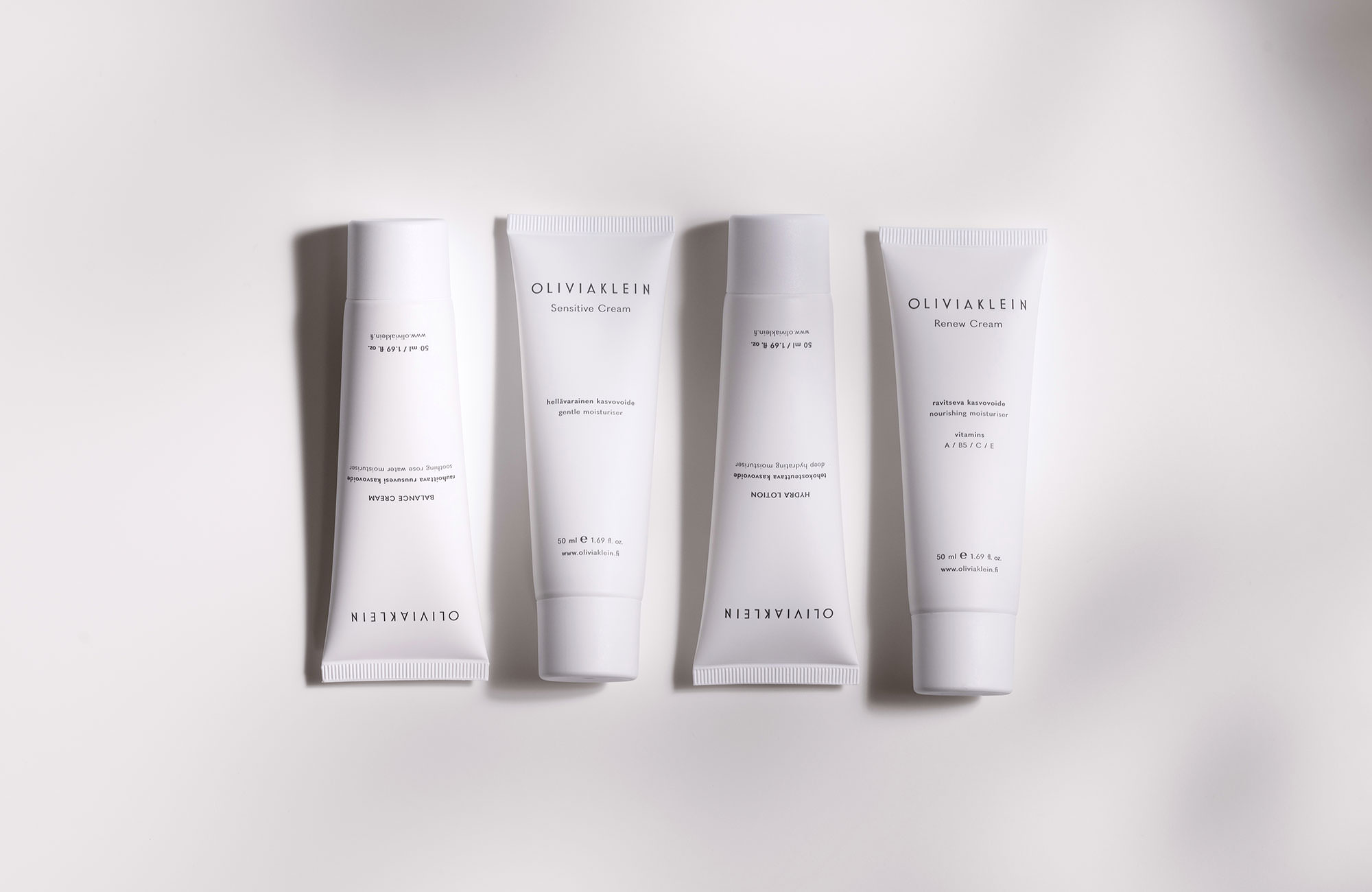 Vuoden 2023 uudistus oli ensimmäinen koko brändimme kattava projekti, minkä myötä päivitimme Olivia Kleinin kauttaaltaan uuteen ulkoasuun, suunnittelimme kaikille tuotteillemme uudet pakkaukset ja keskitimme tuotevalikoimamme päivittäisiin kasvojenhoitotuotteisiin.